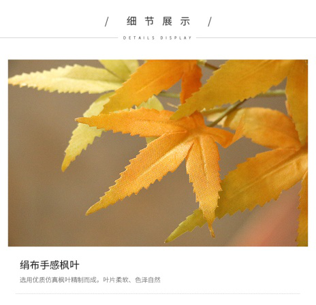 仿真紅楓樹造型,室內(nèi)外通用。 材質(zhì)為實木樹干、油絹布花葉。 仿真度高,環(huán)保耐用。