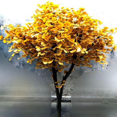 仿真銀杏樹造型,室內外通用。 材質為實木樹干、油絹布花葉。 仿真度高,環保耐用。