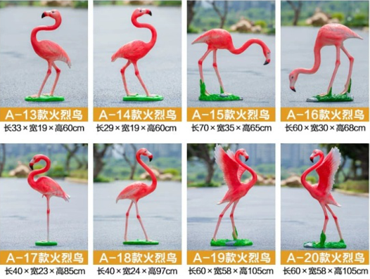 仿真火烈鳥(niǎo)雕塑:材質(zhì):環(huán)保玻璃鋼;工藝:手工上色、雕刻;顏色:多色;款式:多種款式可選;