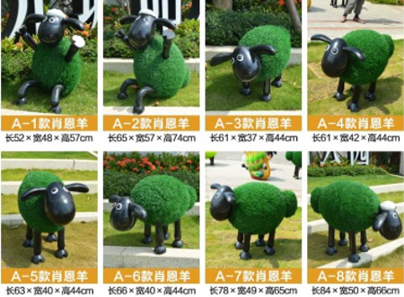 肖恩羊雕塑: 材質:環保玻璃鋼、仿真草; 工藝:手工上色、雕刻; 顏色:多色; 款式:多種款式可選;